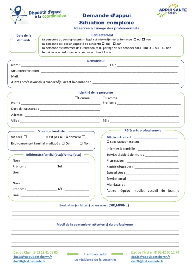 Seuls les professionnels peuvent solliciter l’appui du DAC 18 ou DAC 36 sur une situation complexe. Pour cela, nous les invitons à renseigner le formulaire de demande d’appui et à nous le retourner par l’un des différents moyens indiqués ci-dessous.